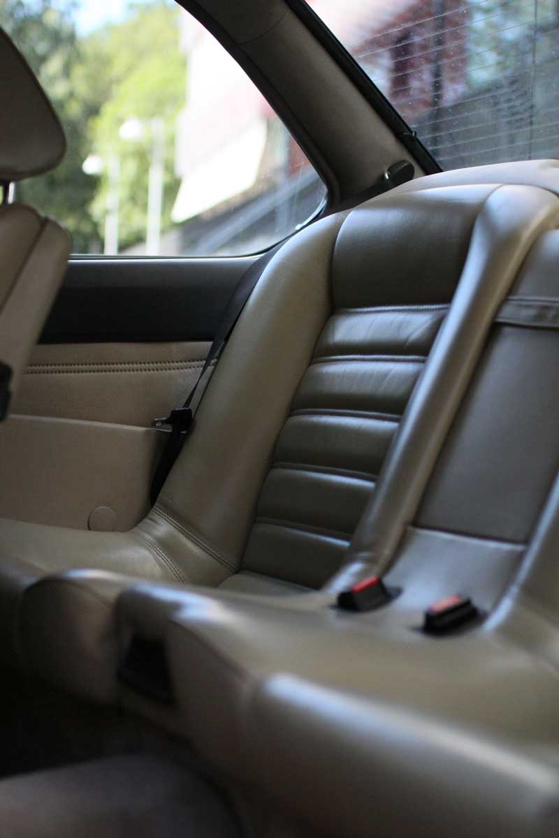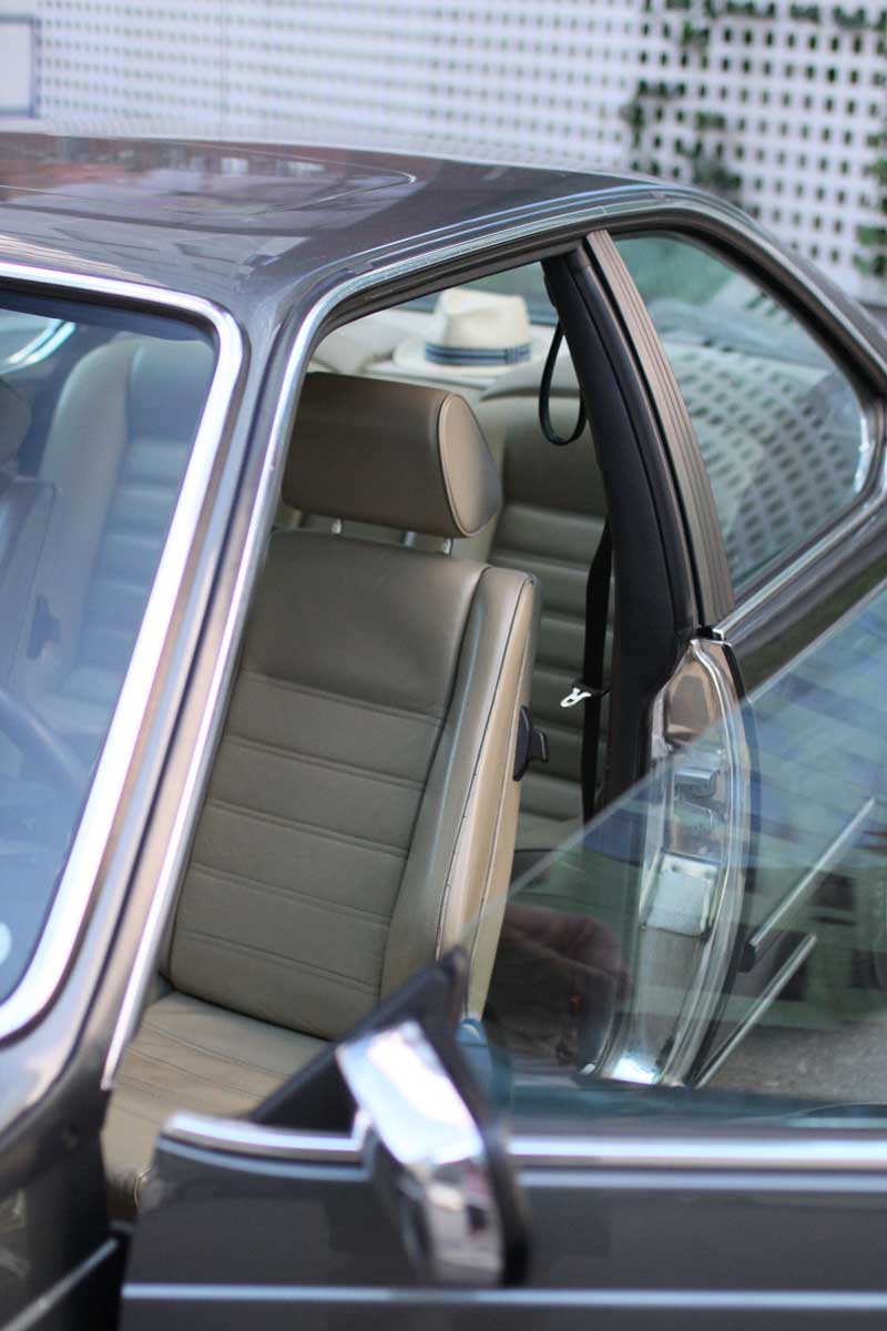 From the almost unused rear seat it strikes me that the interior is spartan. Even when the car is one of the high-end cars of the 80’s, the interior is really slim. It’s no much of a fluffy distraction. It is very beautiful, stripped and clean. Almost calm.