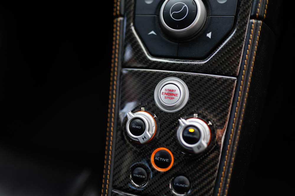 In the McLaren F1, they built in three seats where the driver sat in the middle and the passengers slightly behind on each side. In the 12C, it’s not as obvious unless you think about it, though the driver’s seat is placed closer to the middle of the cockpit than the passenger seat. All to give the driver as good a view and control as possible while driving the car.