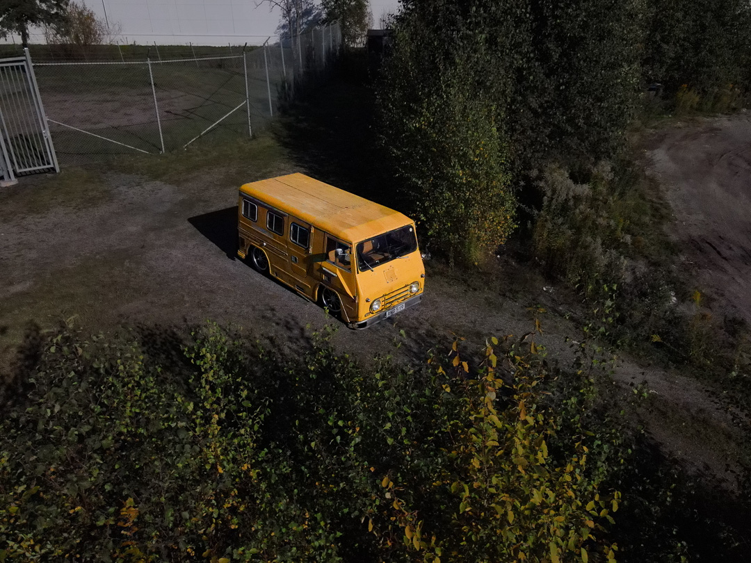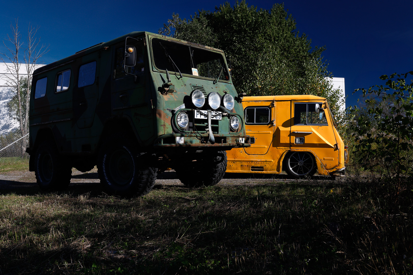 The yellow metal box carefully sniffs its way up the slope along the narrow gravel road, almost as if it’s struggling not to scrape the ground while he twists and turns it into position. Meanwhile, the original Valp plows straight through three bushes and a small tree to get into place—without the slightest hint of being anywhere near the ground beneath it. The chunky tires almost make it look like it’s floating.