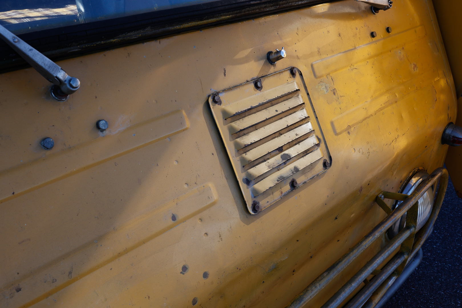 At the front, the Volvo has a bolted ventilation panel with air slots. Demian found two more of these on eBay and mounted them on the rear side panels to improve airflow to the engine.