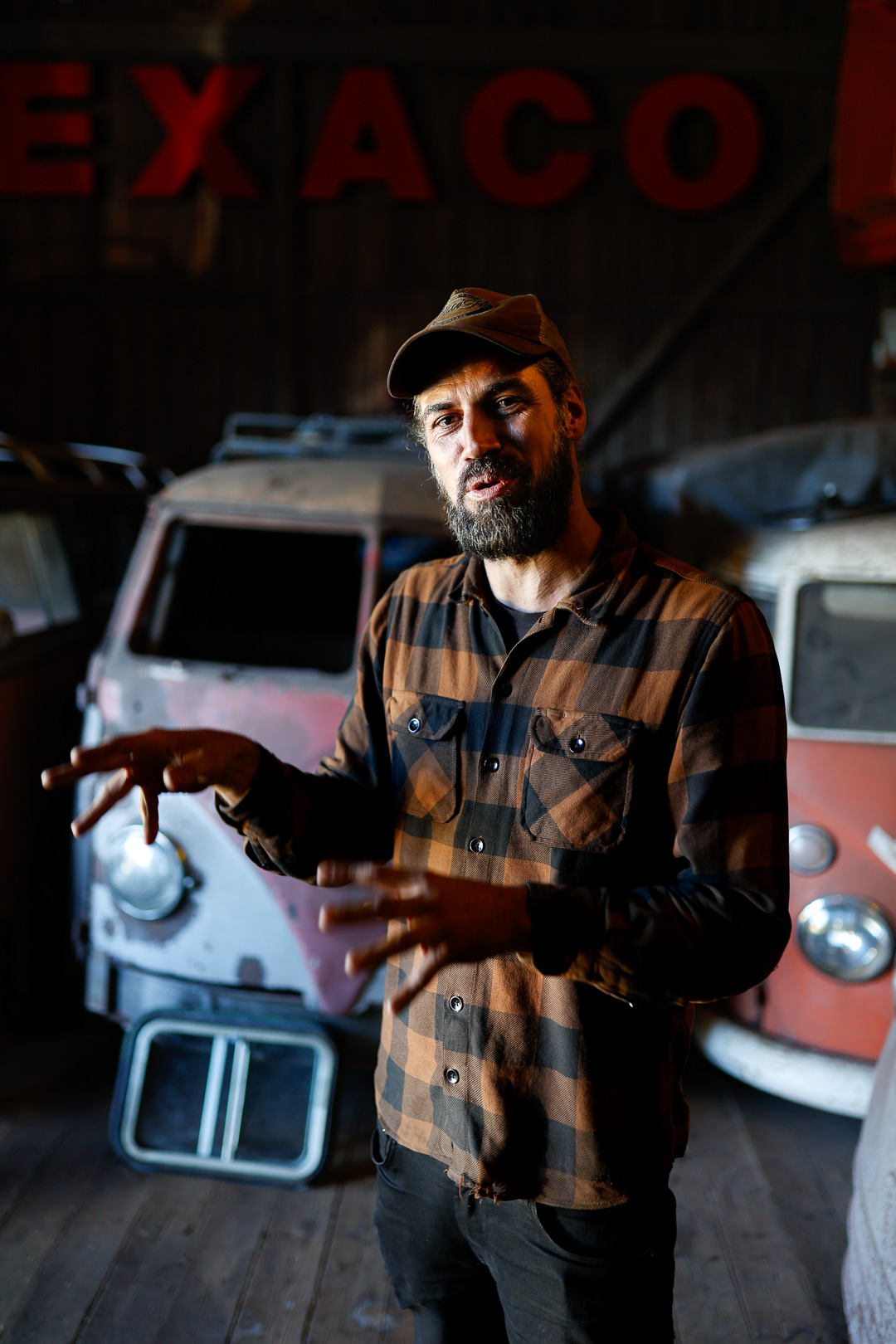 After walking around and carefully inspecting the car, as well as all the barns and garages on his property, we get into the Valp. I’m fascinated by the fact that he’s something of a VW project millionaire—there are cars everywhere you look, and every single one is the kind the VW community drools over.