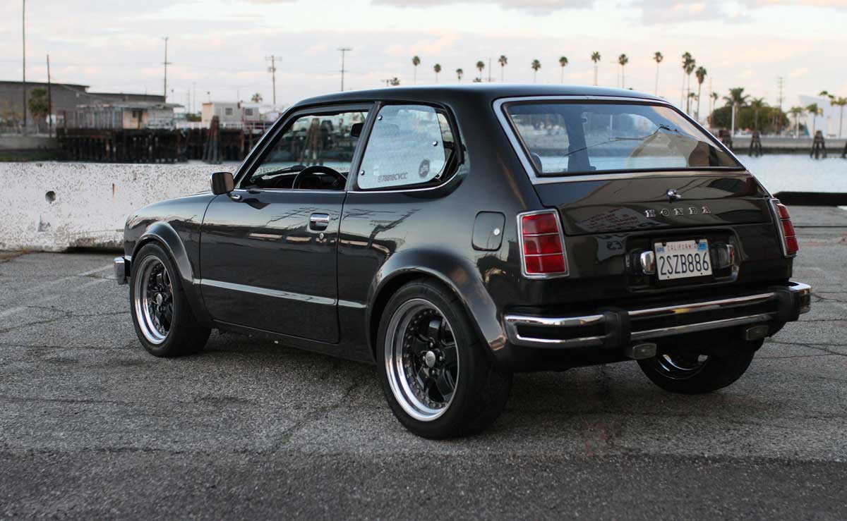 In the far corner sits the bare shell of a first-generation Honda Civic CVCC.