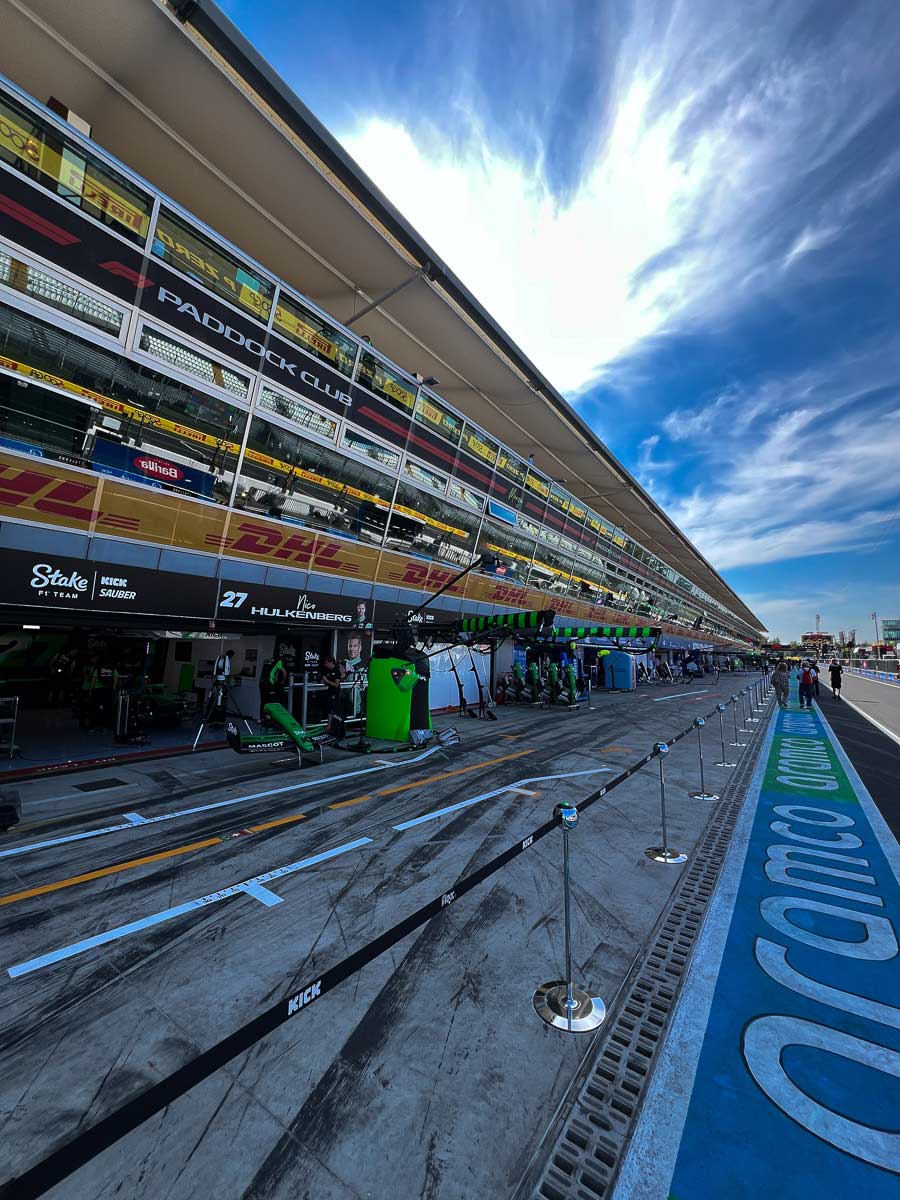 I zigzag my way toward the track and pass the F1 paddock, which has large gates, so only those with authorization are allowed in. I peek curiously inside to see if I recognize anyone I should know, but I do not recognize anyone.