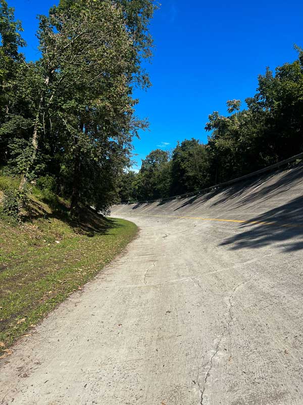 The Banking is a magically beautiful creation that is slowly becoming more a part of nature than a racetrack. When I later ask a marshal, I am told that no one takes care of the Banking – it is simply left to slowly decay and merge with nature.