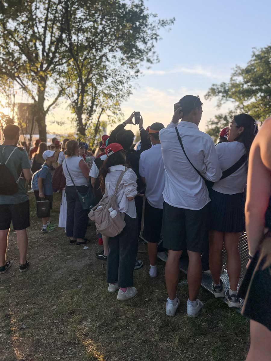 Jogging down the hill, I am met by the main entrance for all cars. Large light signs and advertising monitors bursting through branches and leaves show that something big is about to happen.