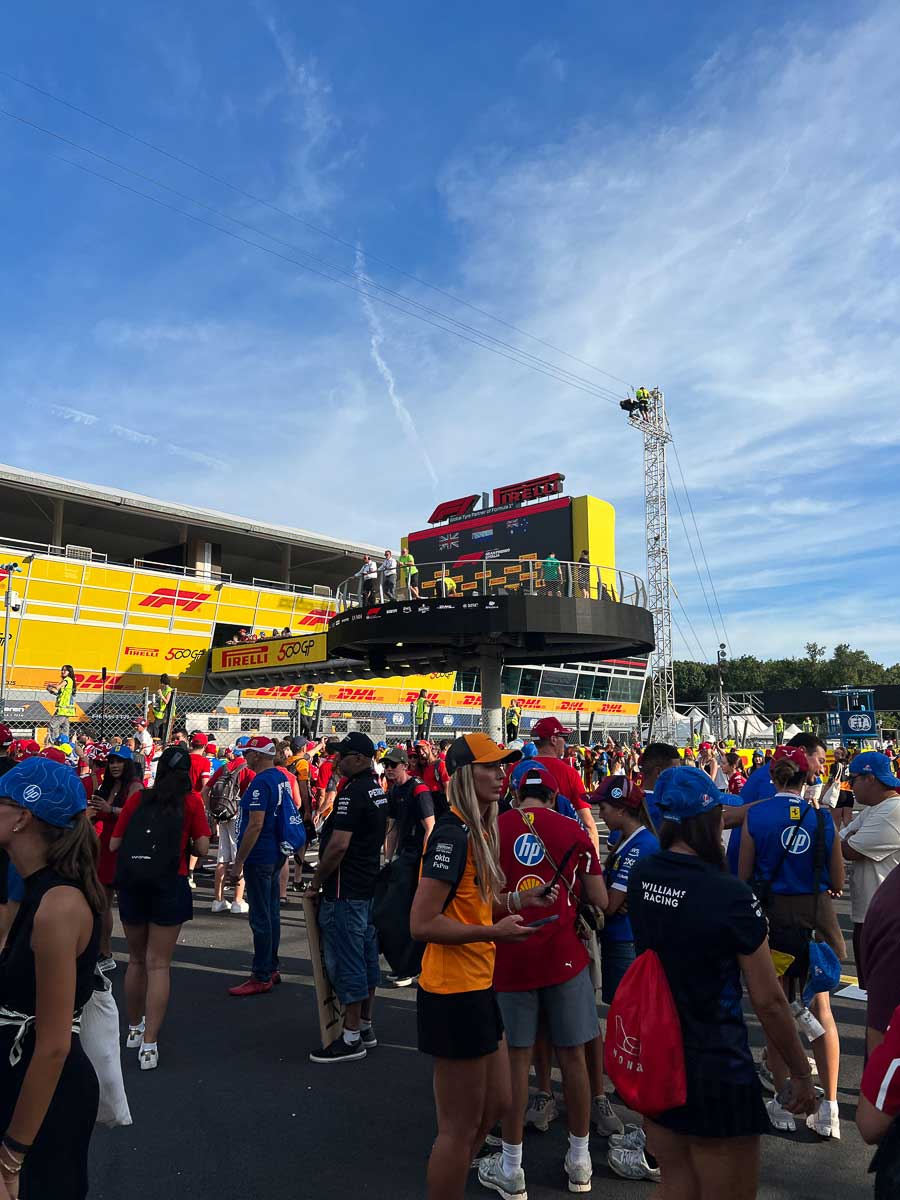 Thousands storm toward the podium, not because Verstappen took a clear victory ahead of Norris and Piastri, but because it’s a tradition at Monza.