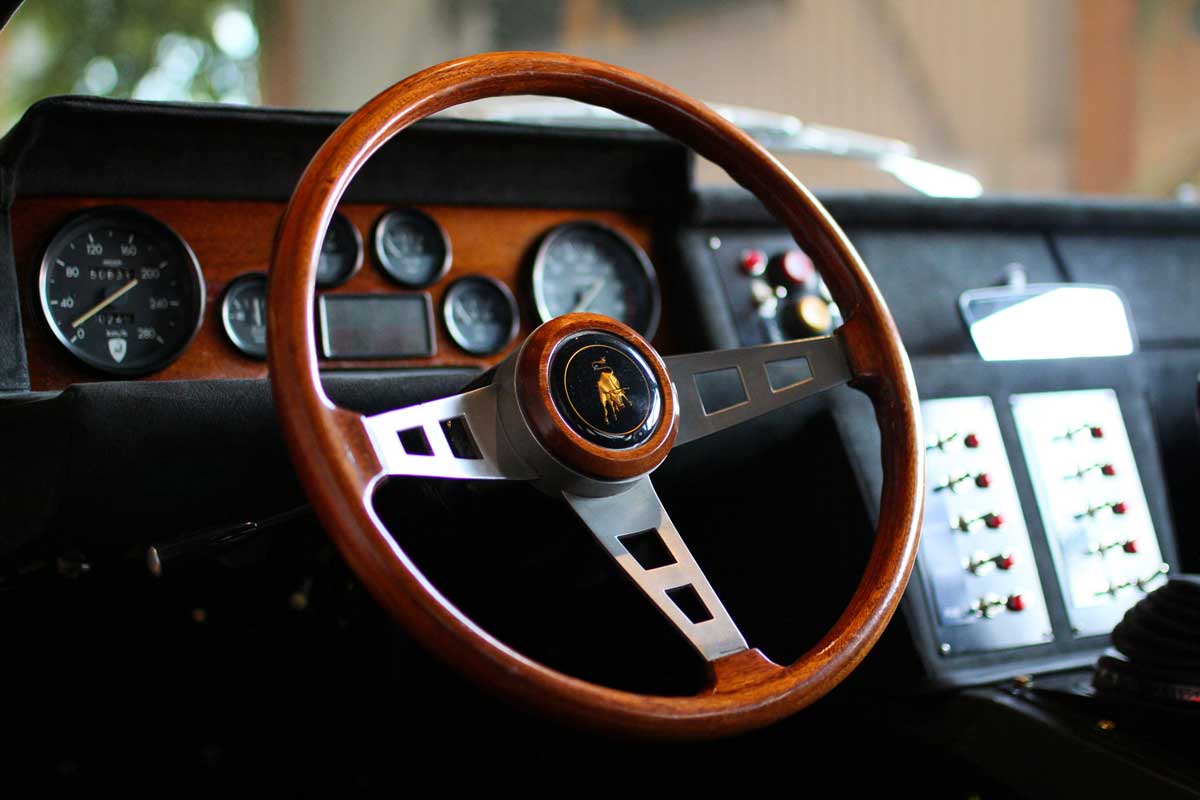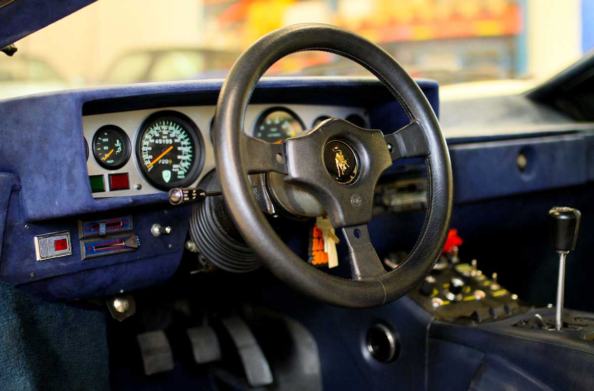 I crawl in, close the door, and sit firmly in the driver’s seat. The cockpit feels surprisingly modern, yet it’s over 40 years old. Here in the Countach, Timo has sat while blasting across roads during the Gumball 3000.