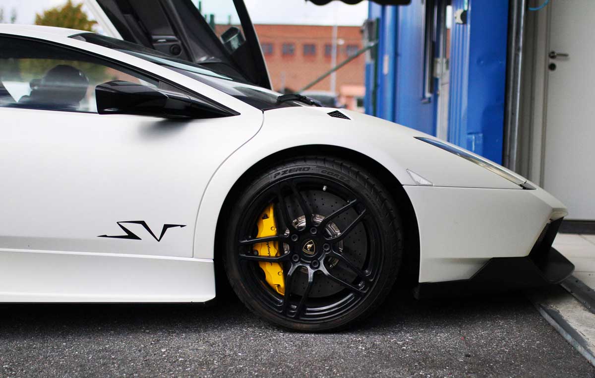 Soon after, Timo starts the Lamborghini Murciélago, and the sound echoes throughout the room as the Italian pistons come to life inside the cylinders. The V12 is sharp and powerful. Slowly, he backs it out, and the hair on my arms stands up.
