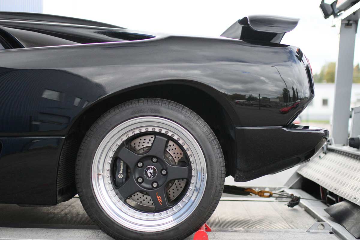 Together, we roll the Diablo out of the garage so it can be loaded onto the carrier. In the dim light of the garage, the Diablo is so black that it’s hard to fully see its shape. But once it rolls out into the daylight, every angle becomes visible.