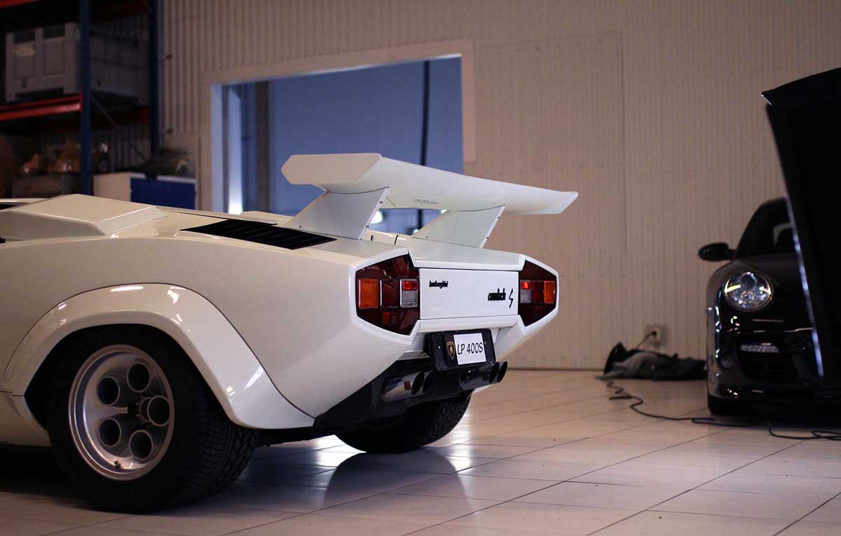 I walk into the garage and stare straight at the white Countach, which now looks a bit lonely without its two younger brothers.