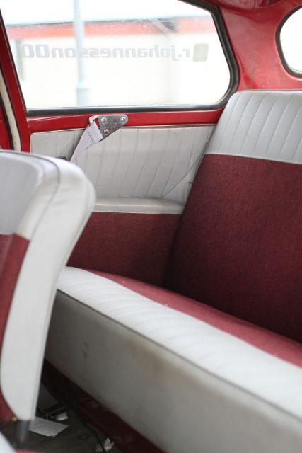 The feeling in the back seat is very spacious for being such a small car with a sloping body. The comfort itself can be discussed, although for being an upholstered rear seat sofa that is more than 60 years old, it is still comfortable.