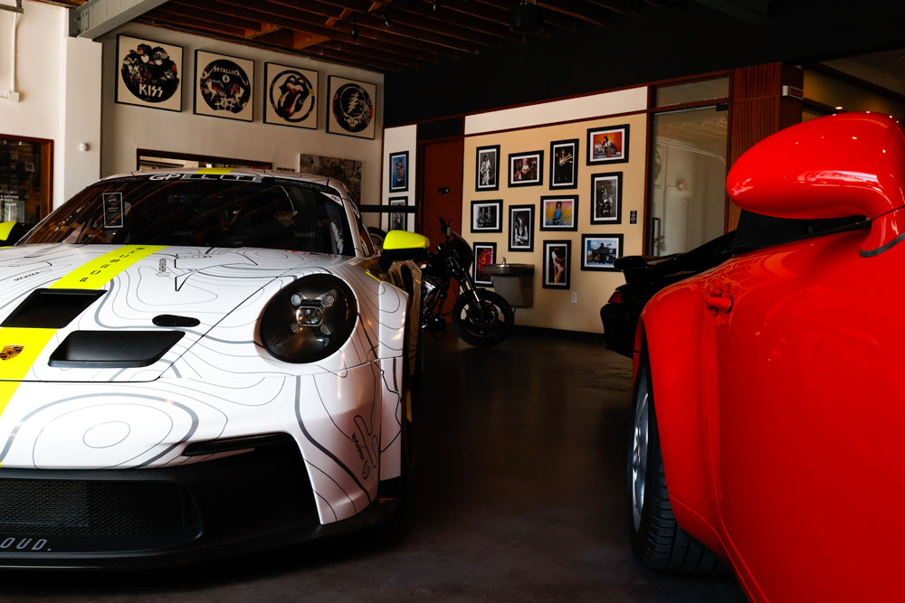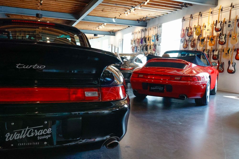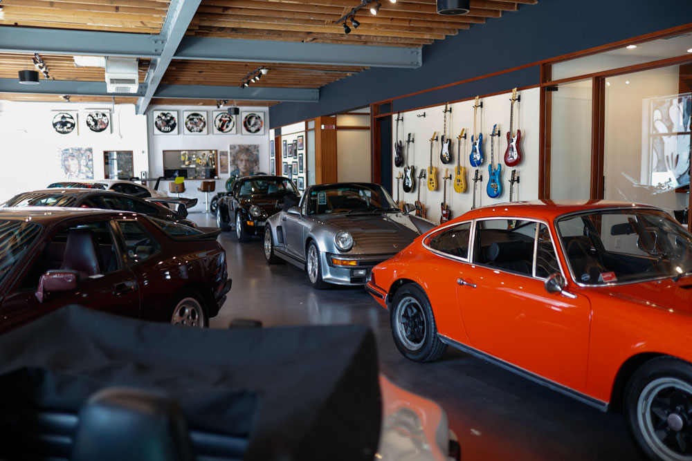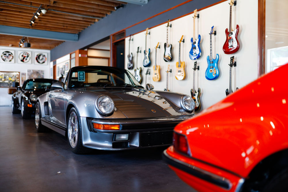 It was this particular Porsche model that made founder Bill forever obsessed with Porsches at the age of three. The price tag reads $250,000, and on the walls behind it, there are nearly a hundred Gibson guitars hanging.